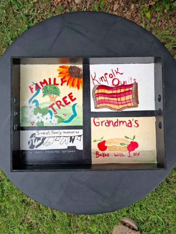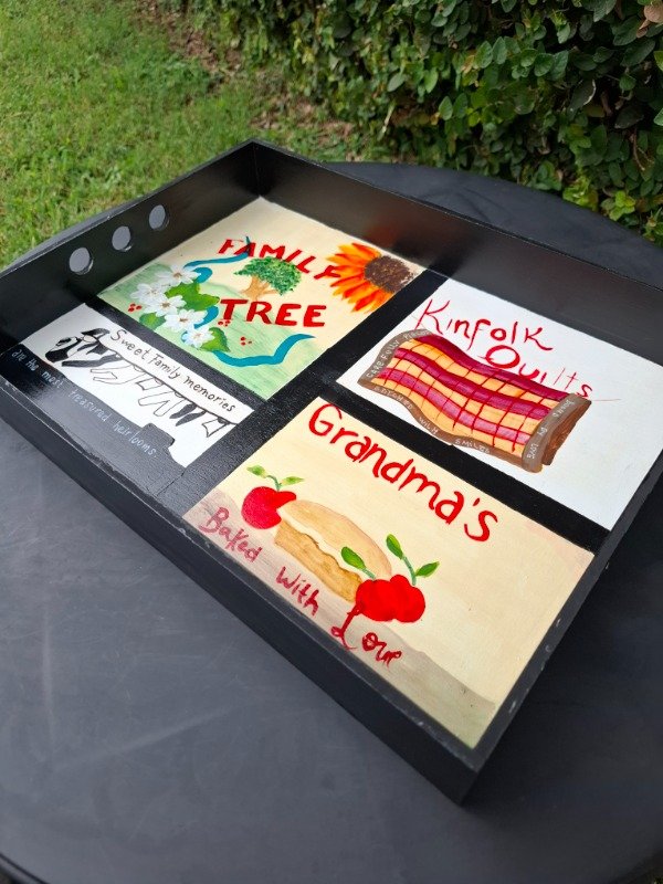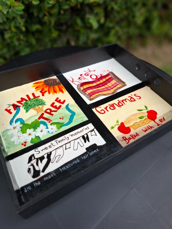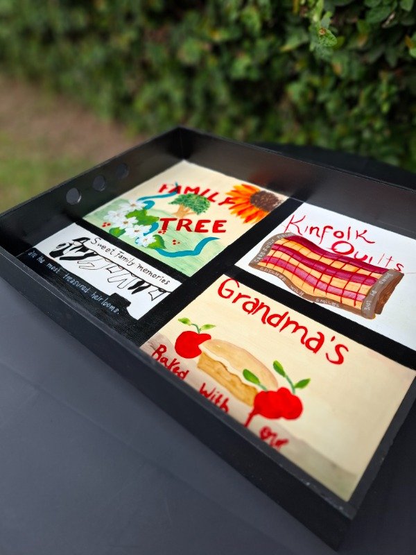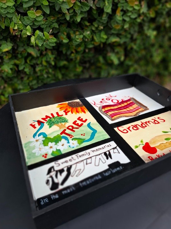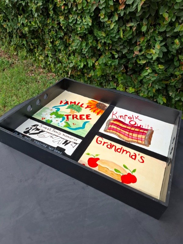 Bandeja de 30x40 cm fondo negro, con multiples intervenciones.