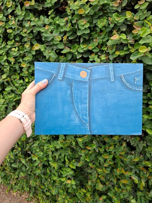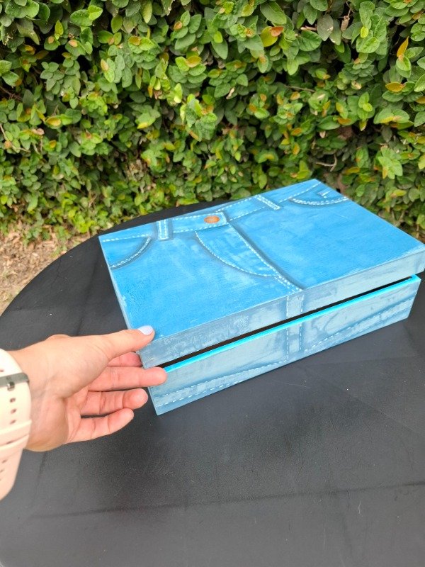 Caja efecto jeans, pintada. Medida 20x30x9 cm.