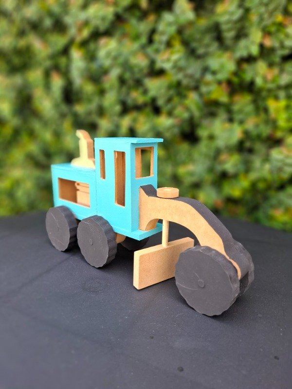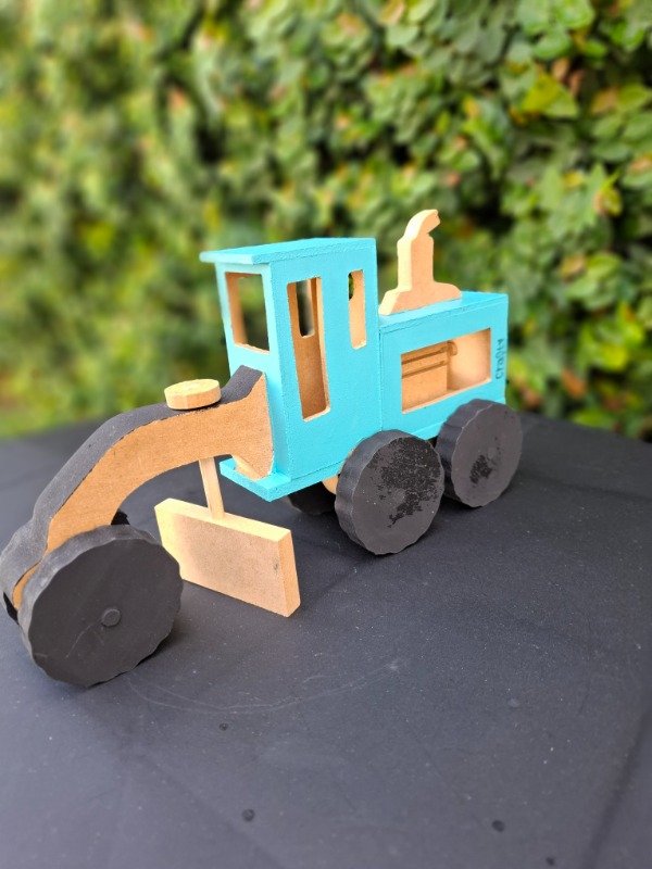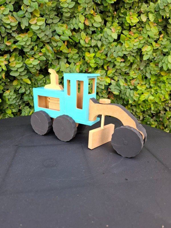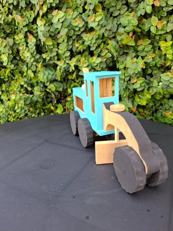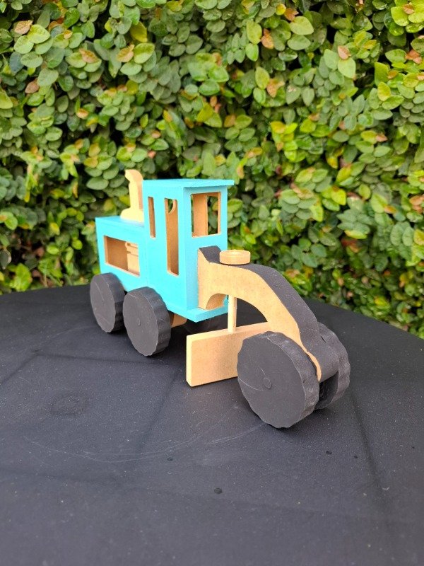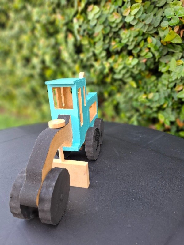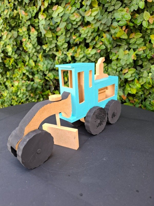 Moto niveladora de madera pintada a mano. Medidas 25x14x7 cm