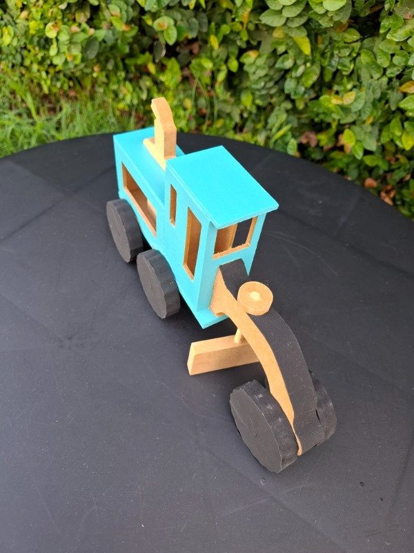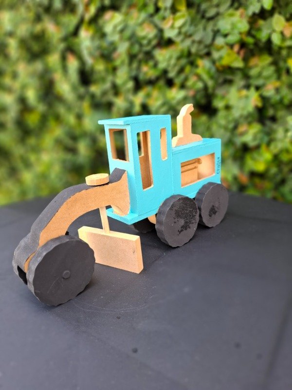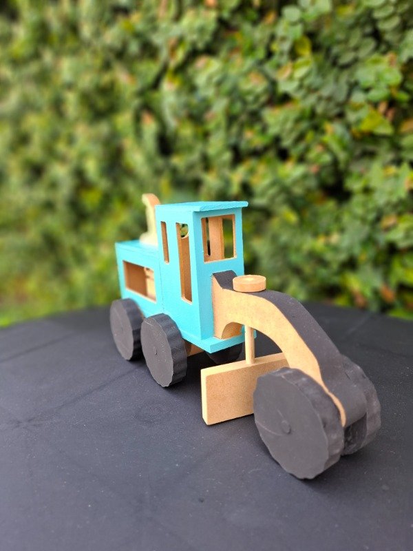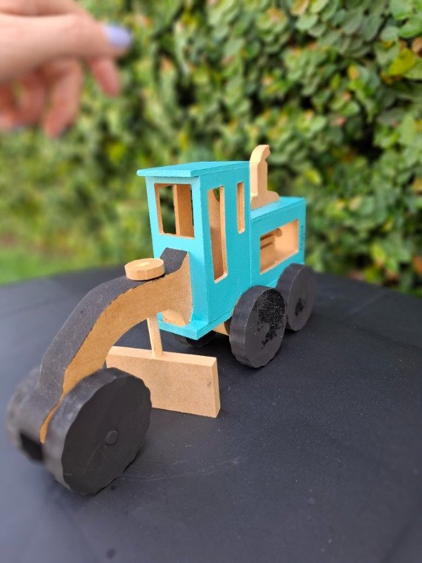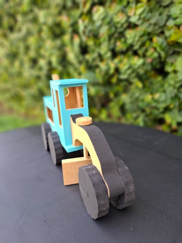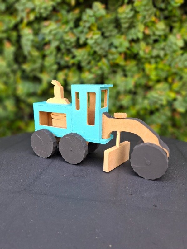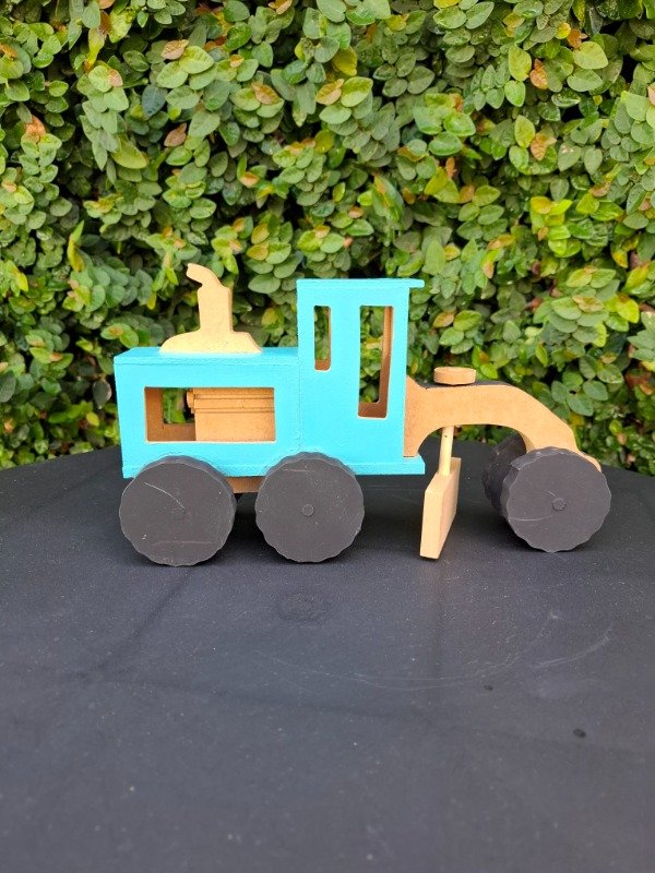 Moto niveladora de madera pintada a mano. Medidas 25x14x7 cm