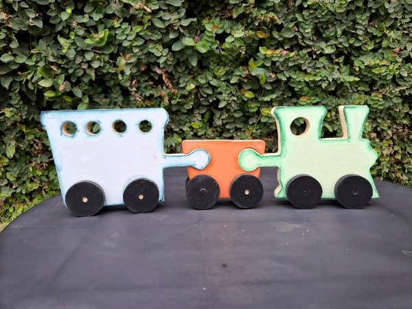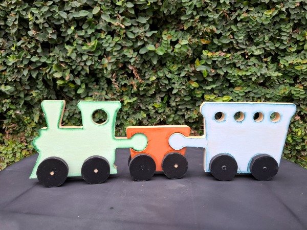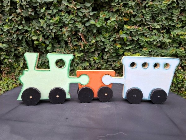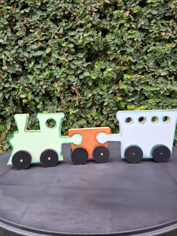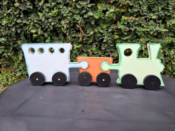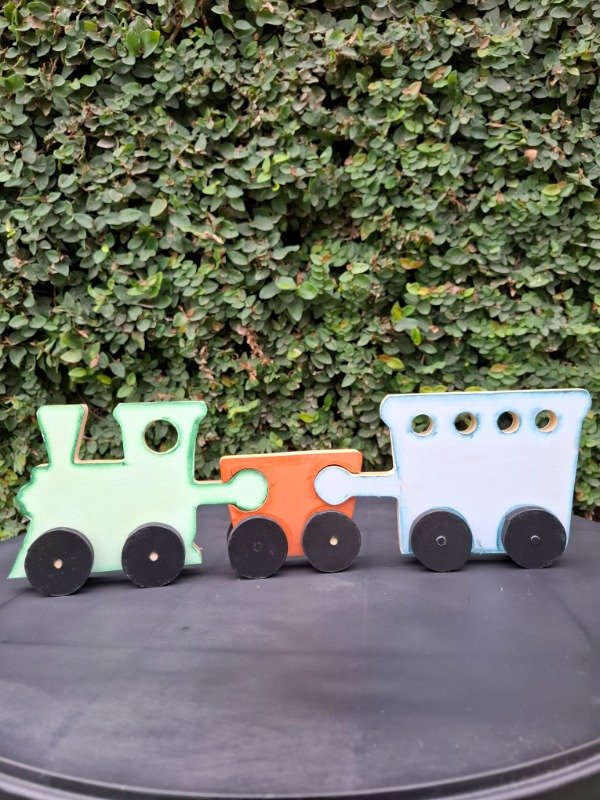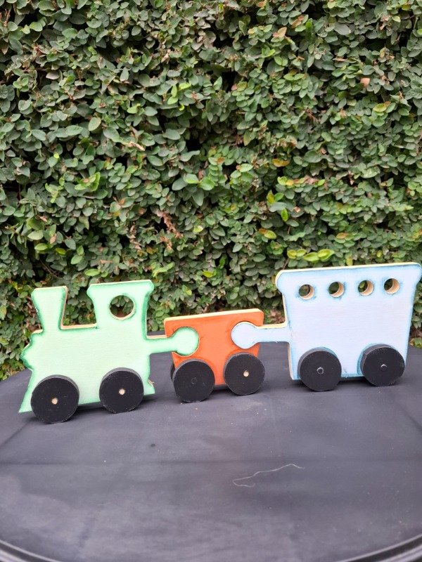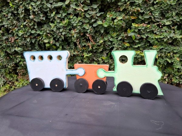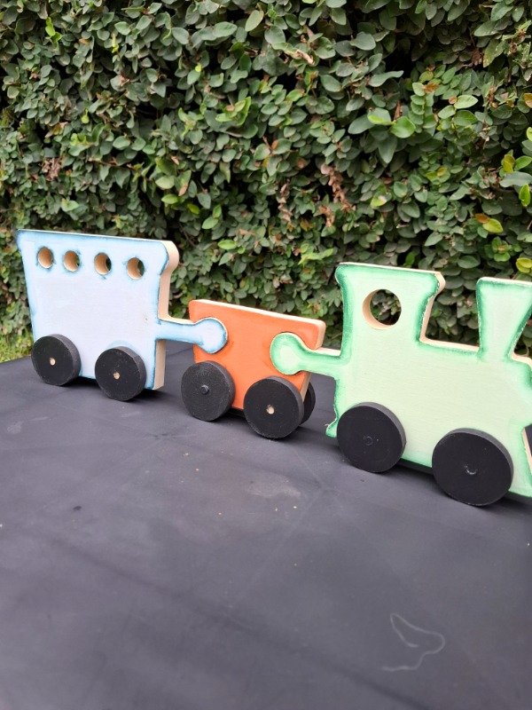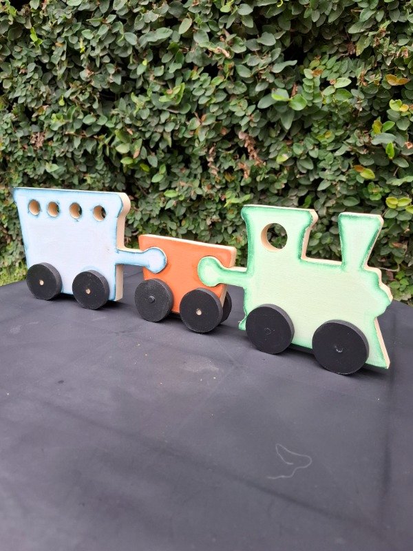Set x3 piezas de encastre, figura tren. 42 cm de largo x 14 de alto.