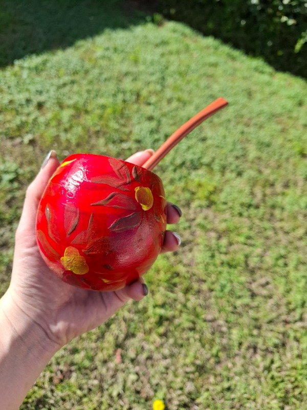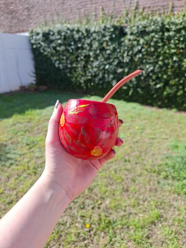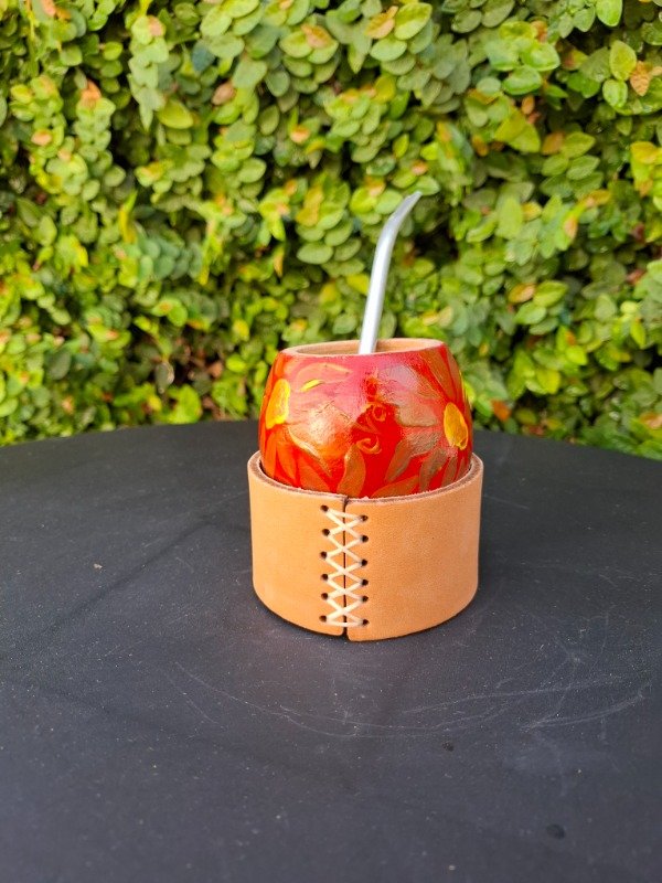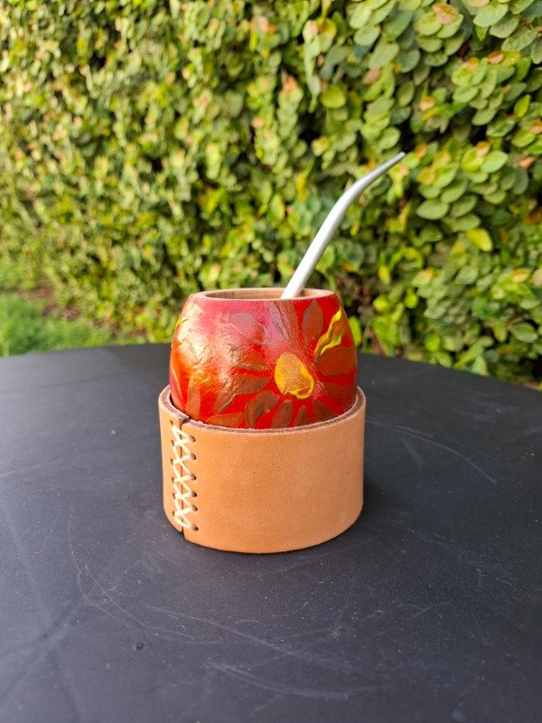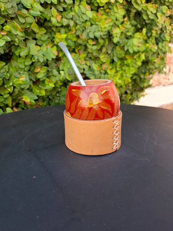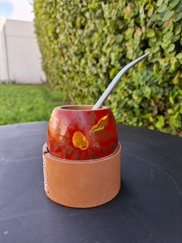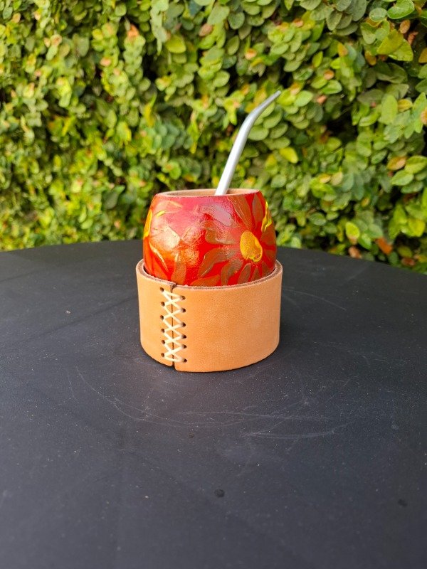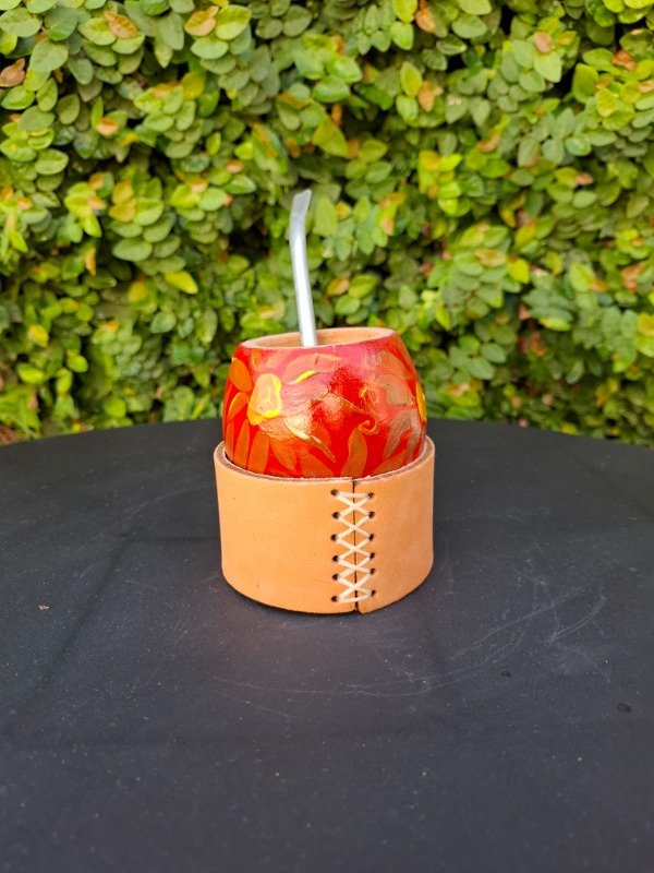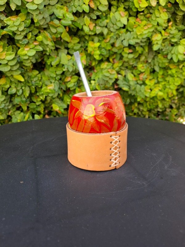 Mate de algarrobo diseño bola, con base de cuero, incluye bombilla de regalo.