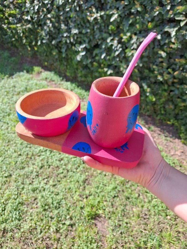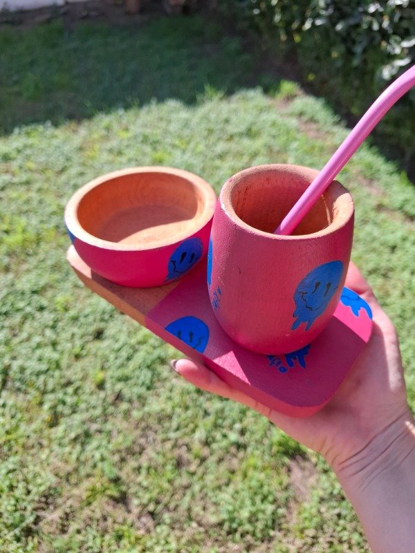 Set completo de tabla de algarrobo 20x9 cm, más cuenco de 10 cm, mate 8,5x6 cm con bombilla de regalo.
