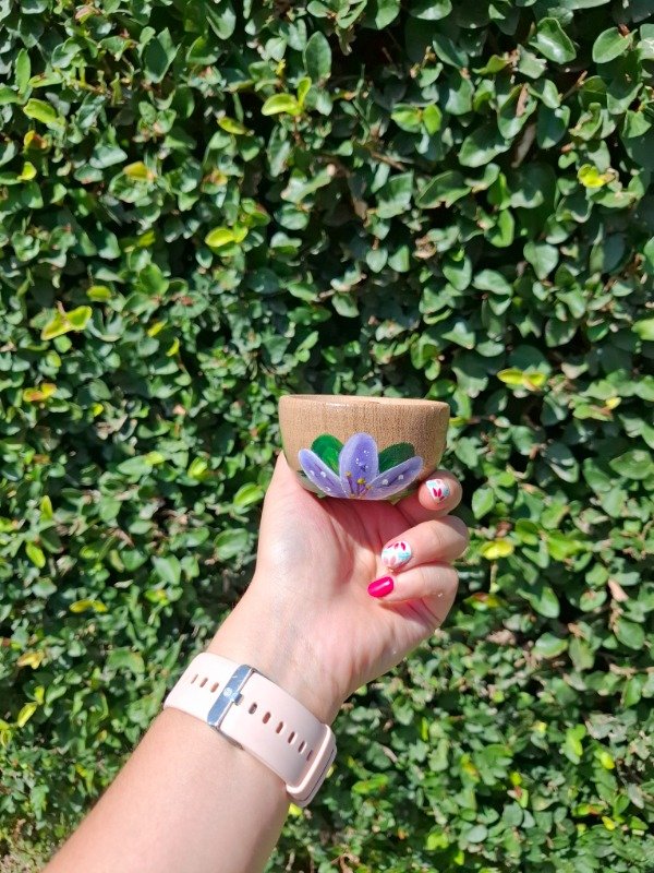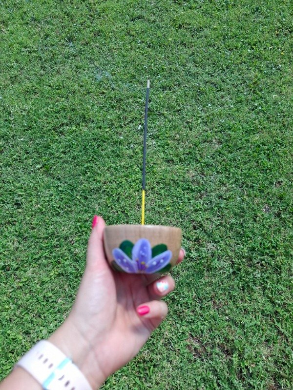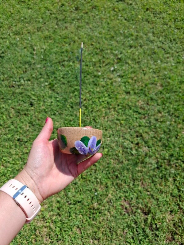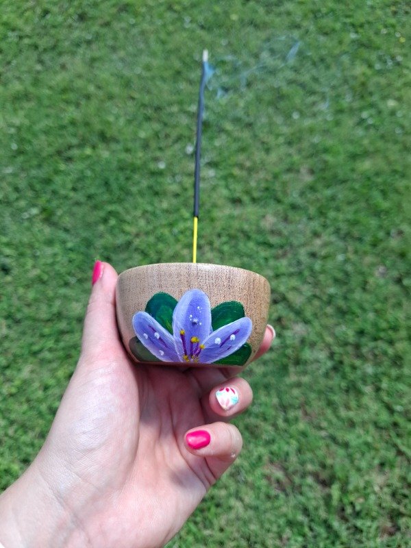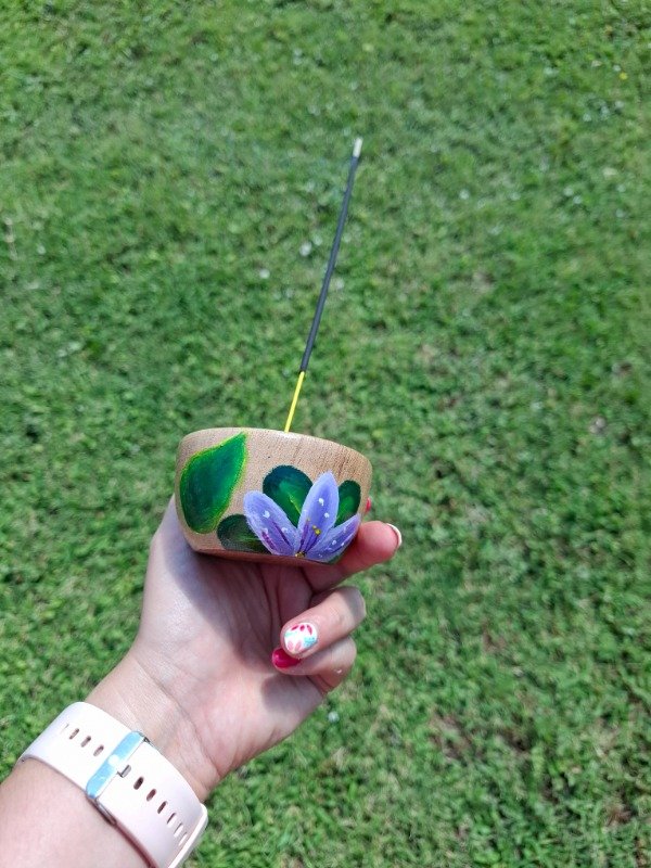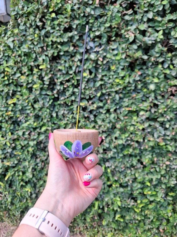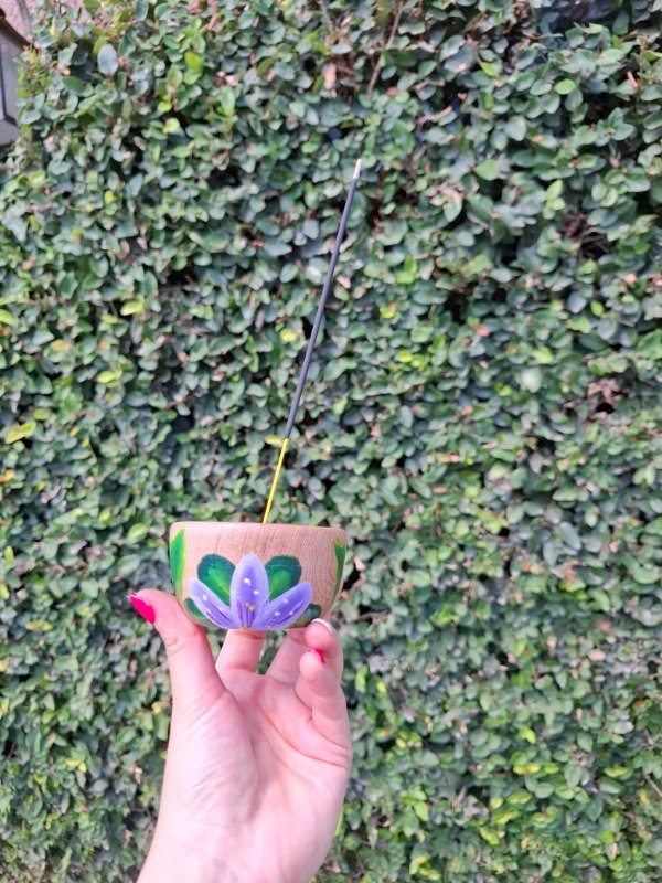 Portasahumerio de algarrobo pintado a mano, diseño Floral pasionaria.