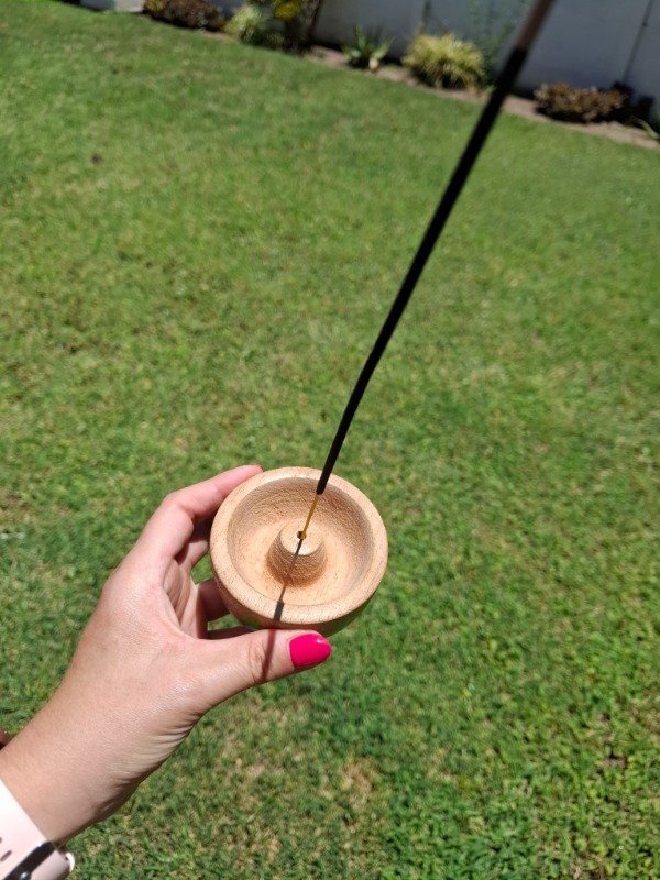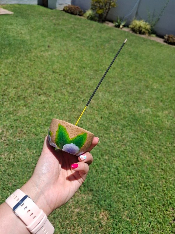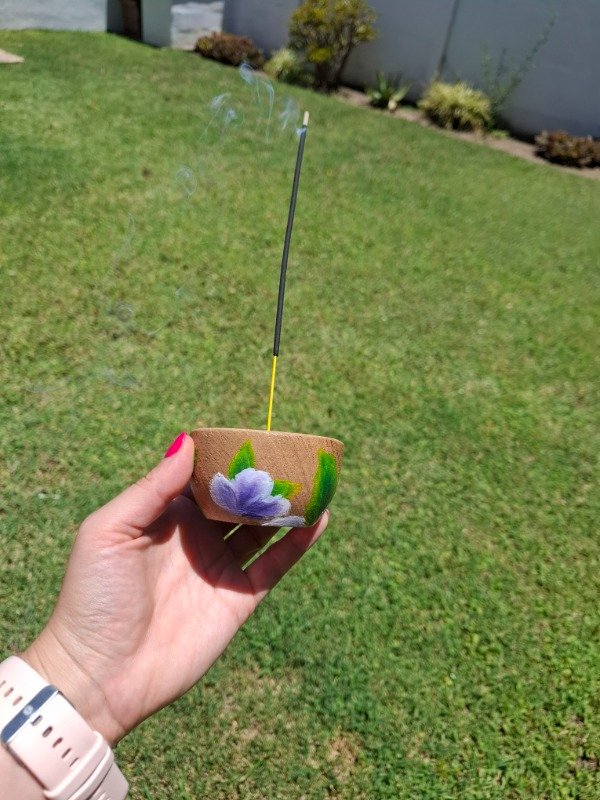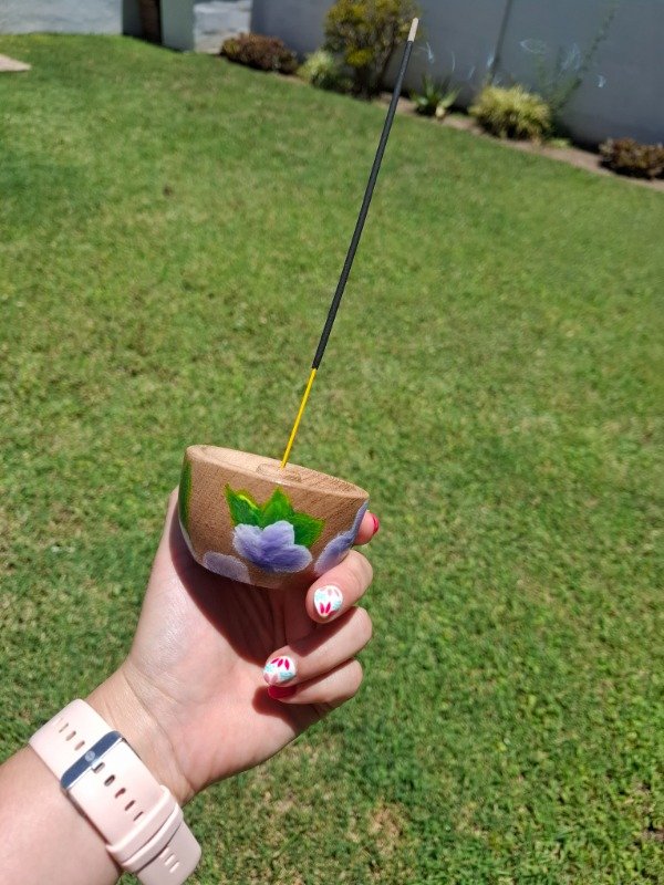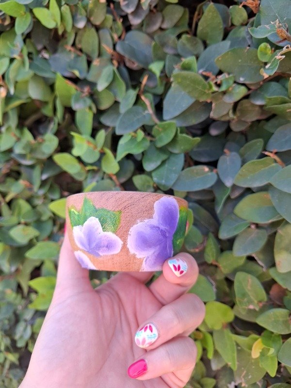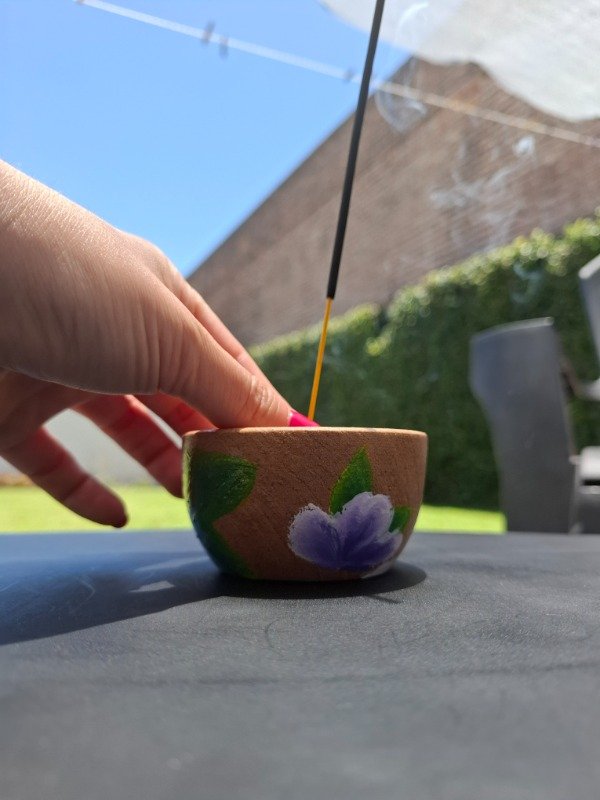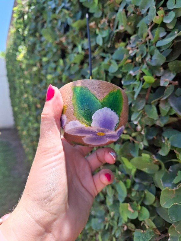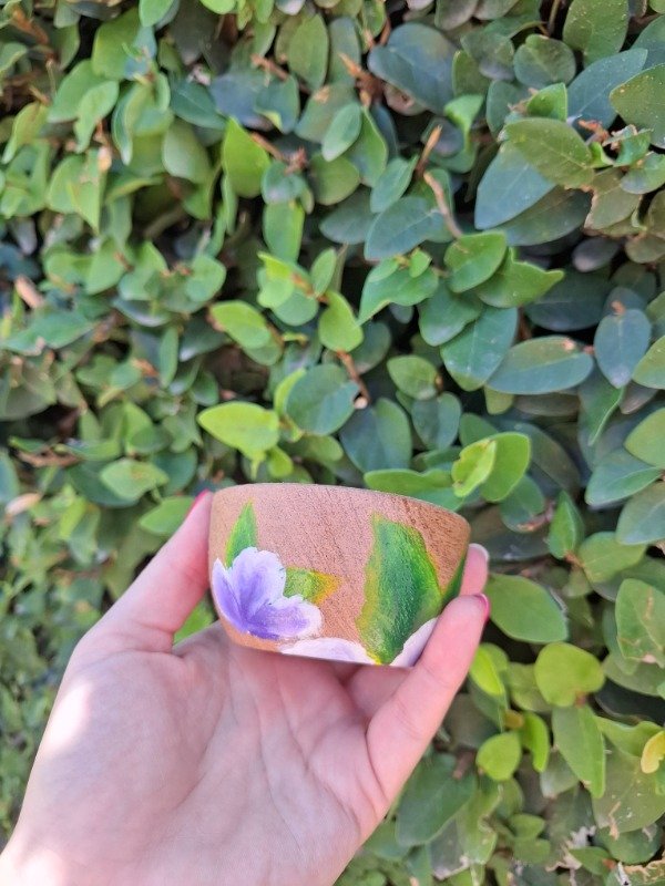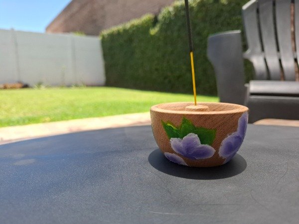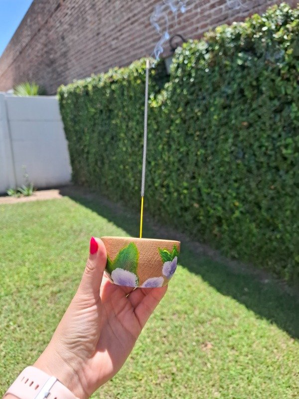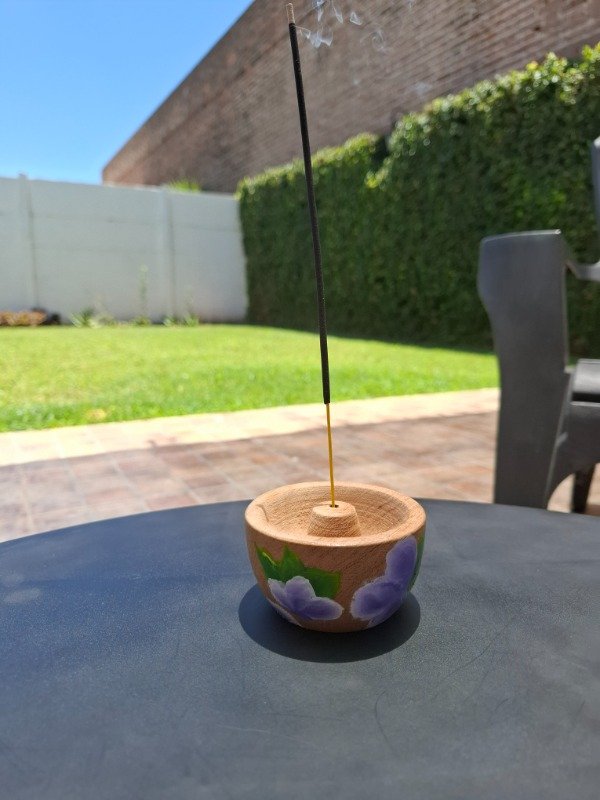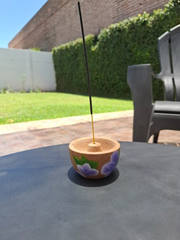 Portasahumerio de algarrobo con diseño Violetas